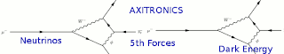 So what happens between the two theories, are they compatible, indeed do they together lead to further explanations of the universe? Assuming both the axial force and mirror matter are real, we have eight copies of every particle, Matter versus Anti-Matter, Left-Handed versus, Right-Handed, and Mirror versus Ordinary Particles. The Known forces are also copied, with an electromagnetic force, and an mirror-electromagnetic force. Because the mirror-electromagnetic force is invisible to ordinary particles, dark matter stays dark. Is they're a also a mirror axial force. Quite possibly, if the standard model plus axial force, works, then so would a mirror copy. But what more interesting if you combine the axial and the mirror axial force, you can mixed them produce two copies, A+A' and A-A'. We may assume that A-A' breaks and gains an mass, while the total axial force remains massless. If in ordinary matter right handed neutrinos are heavy, then in the mirror world left handed neutrinos are heavy. If the heavy neutrinos and mirror neutrinos are bound by some interaction to a heavy composite particle, this is exactly the breaking we'll see. We'd also see a split in mass between to the ordinary light neutrinos and they mirror partners, these could also would mix, to form a very light set of neutrinos and a second set in the keV range, that would decay down to the lightest version.
